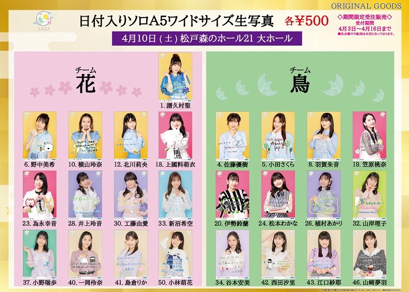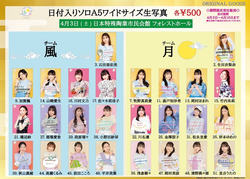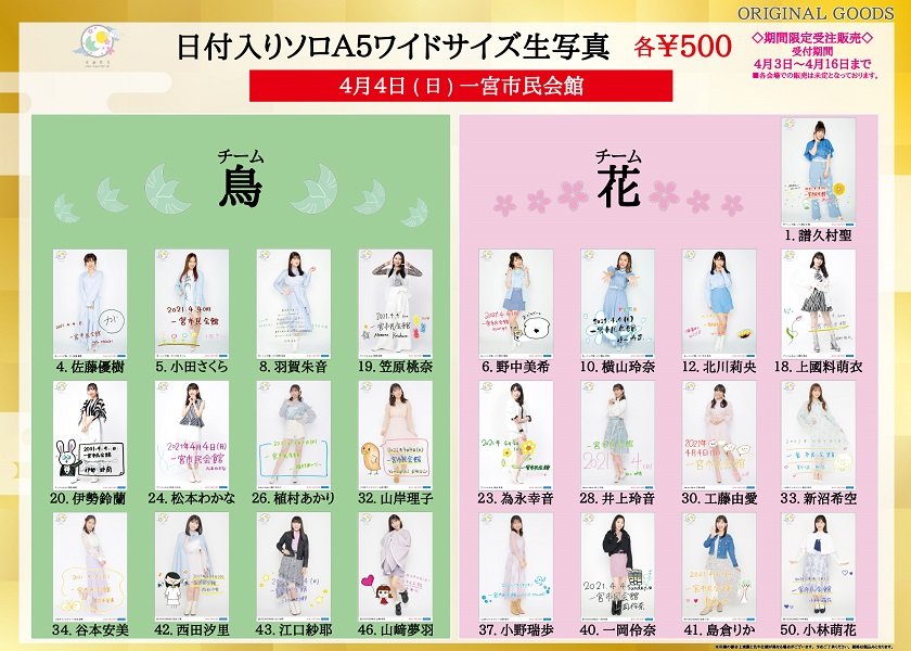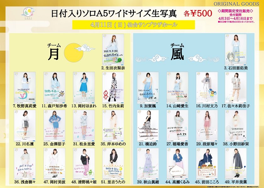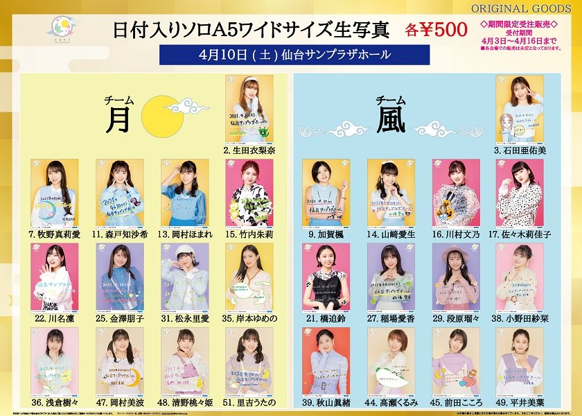 ※4月17~25日開催予定の各会場の日付入りソロA5ワイドサイズ生写真を販売致します。詳細は商品ページにてご確認下さい。