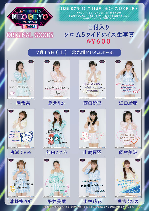 ※7/15~23開催予定の各会場の日付入りソロA5ワイドサイズ生写真を販売いたします。