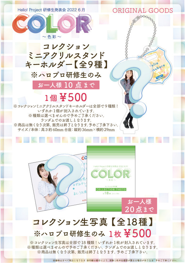 【UF Goods Land】Hello! Project 研修生発表会 2022 6月 COLOR~色彩~ グッズ公開!