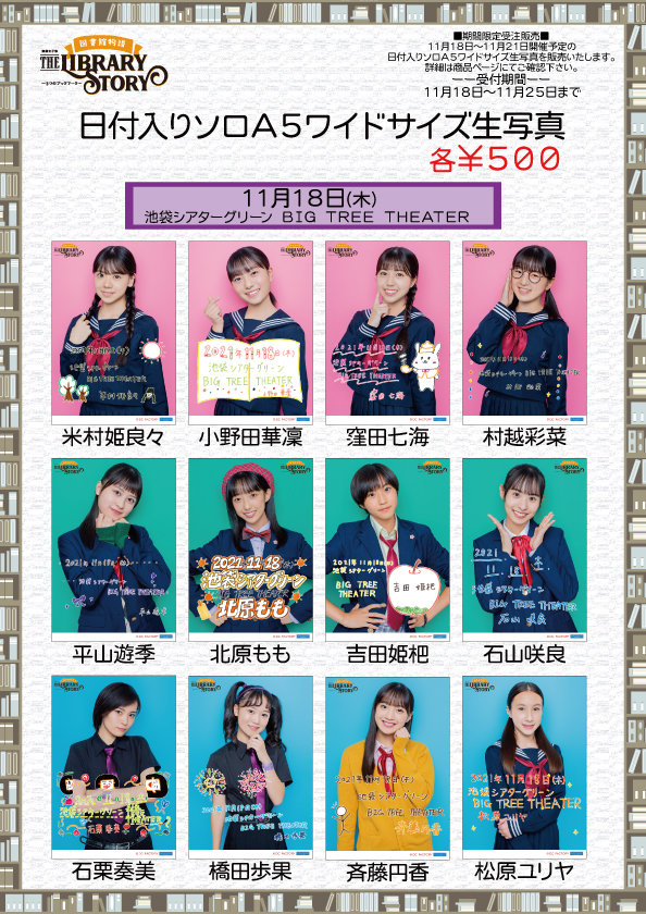 ※11月11日~17日開催予定の日付入りソロA5ワイドサイズ生写真を販売致します。詳細は商品ページにてご確認下さい。