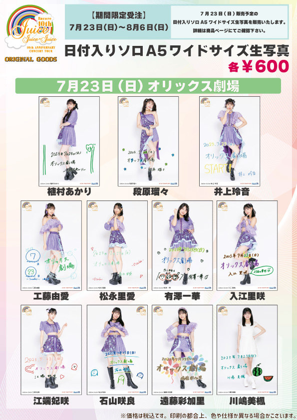 7/23開催予定の日付入りソロA5ワイドサイズ生写真を販売いたします。