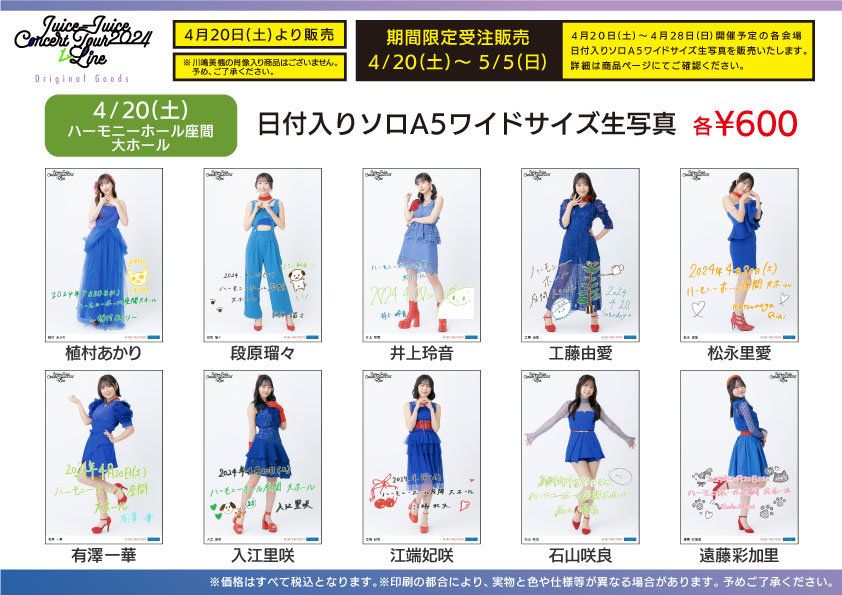 ※4/20~4/28開催予定の各会場の日付入りソロA5ワイドサイズ生写真を販売いたします。