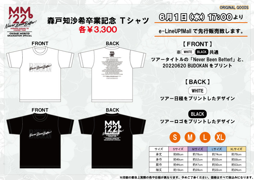 6/20(月)モーニング娘。'22 CONCERT TOUR ~Never Been Better!~ 森戸知沙希卒業スペシャル公演に先駆けて、6/1(水)17:00より、森戸知沙希卒業記念Tシャツ、シリコンバンド、ジャンボうちわをe-LineUP!Mallで先行販売いたします!