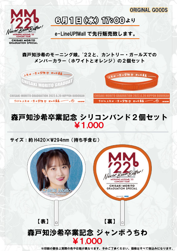 【UF Goods Land】モーニング娘。'22 CONCERT TOUR ~Never Been Better!~ 森戸知沙希卒業スペシャル 先行販売のお知らせ