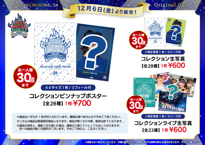 12/6開催予定の日付入りソロA5ワイドサイズ生写真を販売いたします。