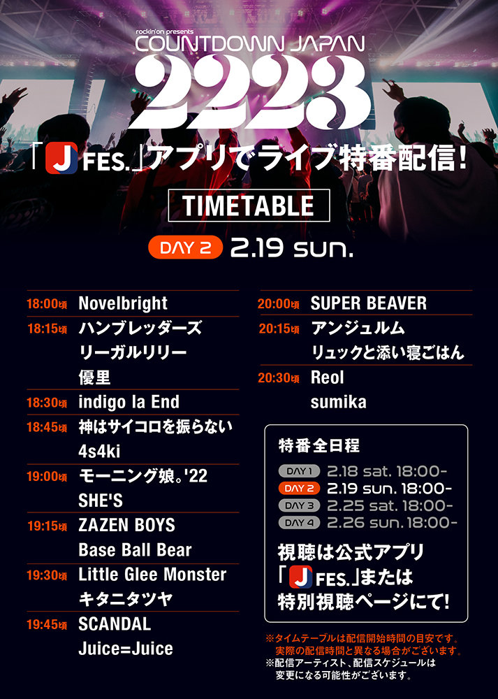 COUNTDOWN JAPAN 22/23のライブ映像を全4日間、トータル約15時間にわたってお届けする特番配信!