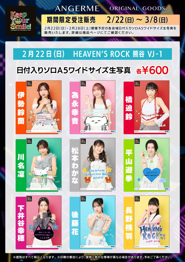 2/22~2/28開催予定の各会場日付入りソロA5ワイドサイズ生写真を販売いたします。