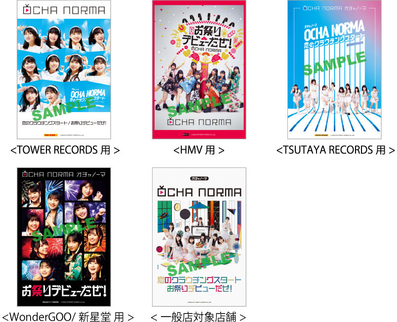 2022年7月13日(水)に発売される、OCHA NORMA メジャーデビューシングル『恋のクラウチングスタート/お祭りデビューだぜ!』の初回生産限定盤A・B・SP及び通常盤A・Bを下記店舗にてお買い求めいただいたお客様に先着でオリジナル特典をプレゼントいたします。