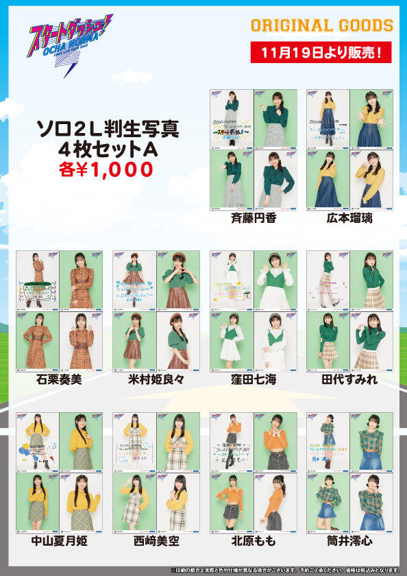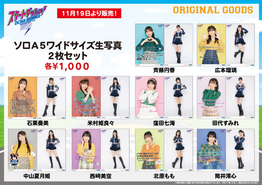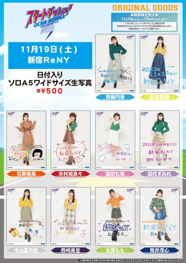 11/19~27の各会場の日付入りソロA5ワイドサイズ生写真を販売いたします。