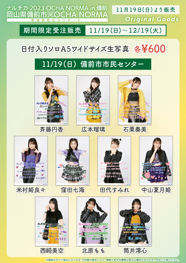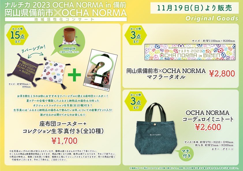 【UF Goods Land】岡山県備前市×OCHA NORMA 地域活性化コンサート ナルチカ 2023 OCHA NORMA in 備前  グッズ公開!