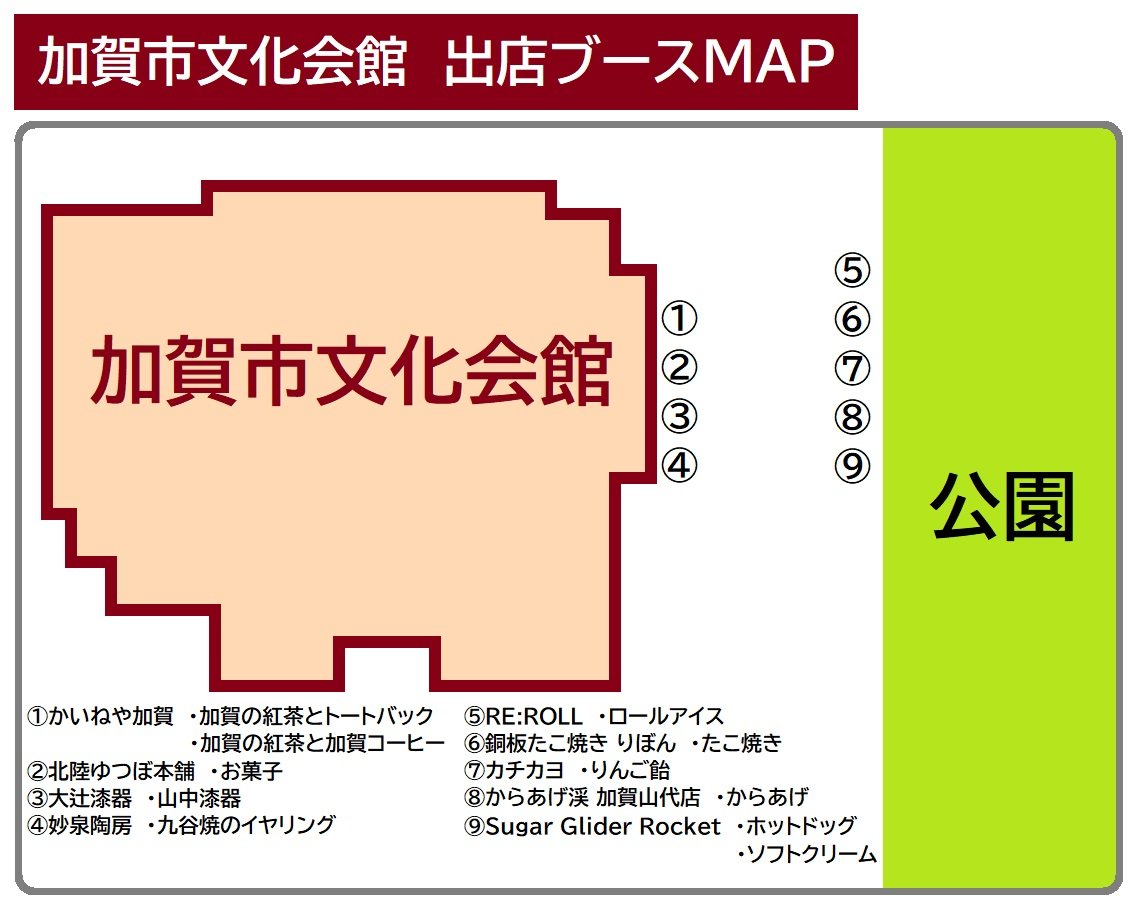 北陸新幹線『加賀温泉駅』から路線バスで約8分『文化会館前(加賀市)』下車