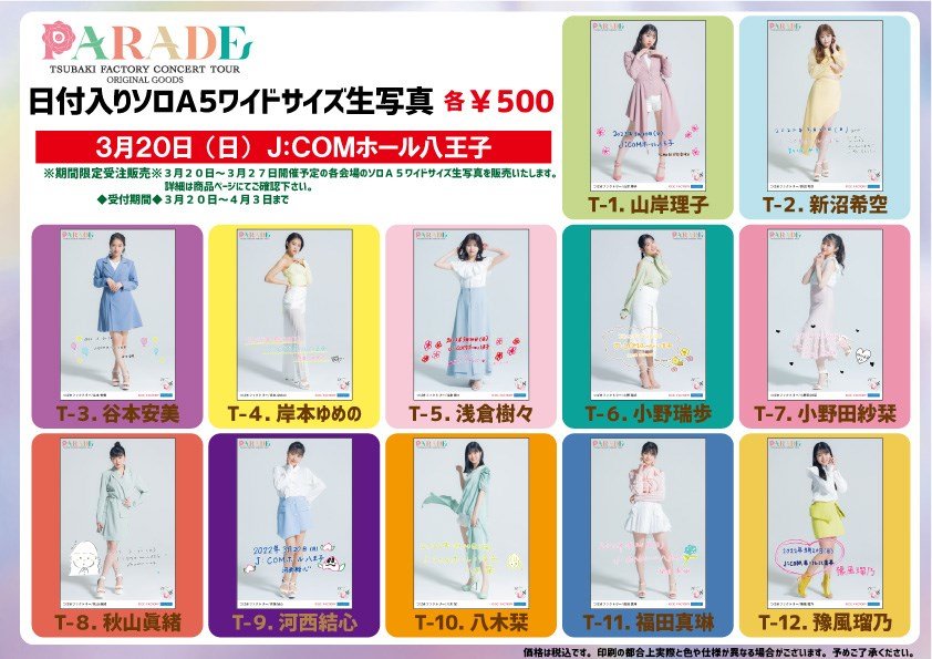 ※3/20・3/27開催予定の各会場の日付入りソロA5ワイドサイズ生写真を販売いたします。