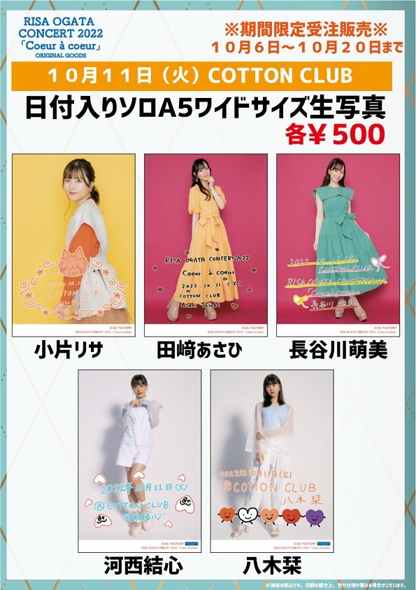 ★10/6、10/11公演の日付入りソロA5ワイドサイズ生写真を期間限定で受注販売いたします。