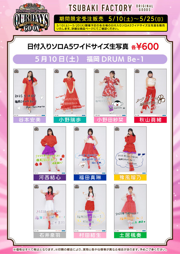 【UF Goods Land】つばきファクトリー 10th Anniversary Live Tour 2025 Spring ~OUR DAYS GO ON~ グッズ公開!